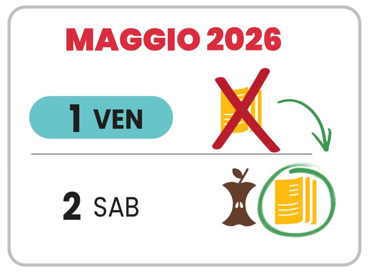 Il calendario di raccolta subirà alcune modifiche durante le festività del 1 maggio 2026.